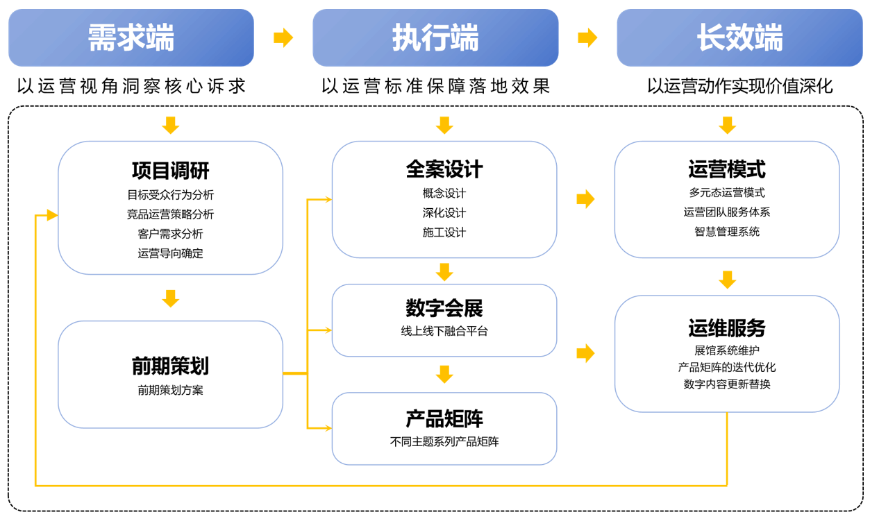 公司聚焦主题场馆全案服务,业务覆盖航空航天、国防科普、历史文化、红色党建、科技创新及行业专题等多元领域,深度融合数字会展、模块化产品矩阵等创新模式,依托多媒体交互、沉浸式场景等前沿技术,打造视觉震撼与情感共鸣兼具的体验空间。无论是国防科普展馆、主题展馆还是政府文化项目,均能提供精准化、高品质解决方案。